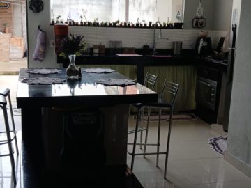 Alugo casa com 3 quartos, sala integrada a cozinha em conceito aberto com ilha central com bancadas novinhas em porcelanato,Cooktop 5 bocas, Pia do banheiro com Cuba esculpida em porcelanatol ,lavabo com pisos e utensílios de primeira, Porta pivontante na sala, todas as janelas e corrimão da escada em blindex, sacada, garagem , área de serviço e churrasqueira.